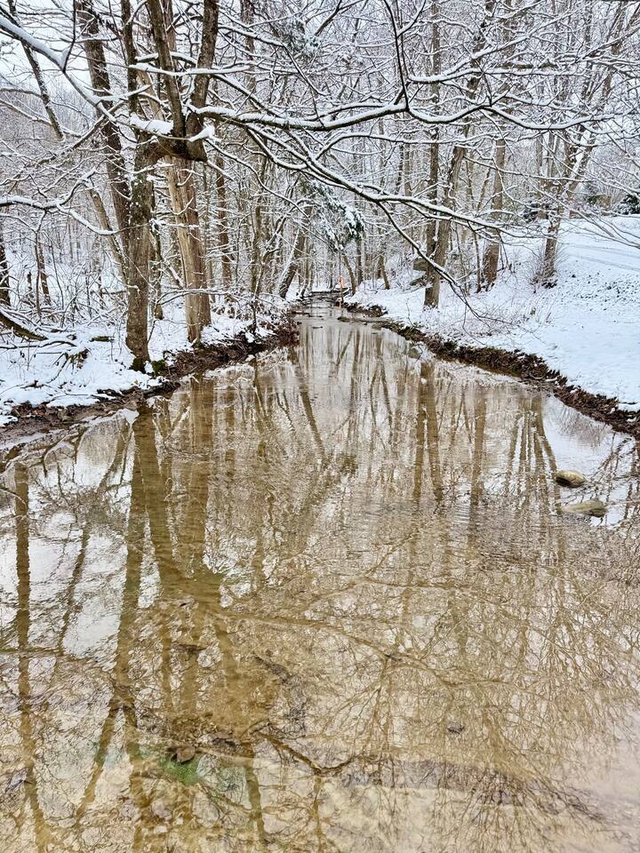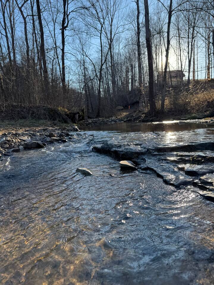Tucked away in a quiet hollow, you’ll find a charming countryside retreat surrounded by just a handful of homes, each set at a comfortable distance for peace and privacy. Wander down the lane and let the stillness of the hollow embrace you, where time seems to slow and nature whispers all around. At the bottom of the property, a seasonal creek awakens in late fall and spring, its gentle flow adding a touch of enchantment to this serene escape.