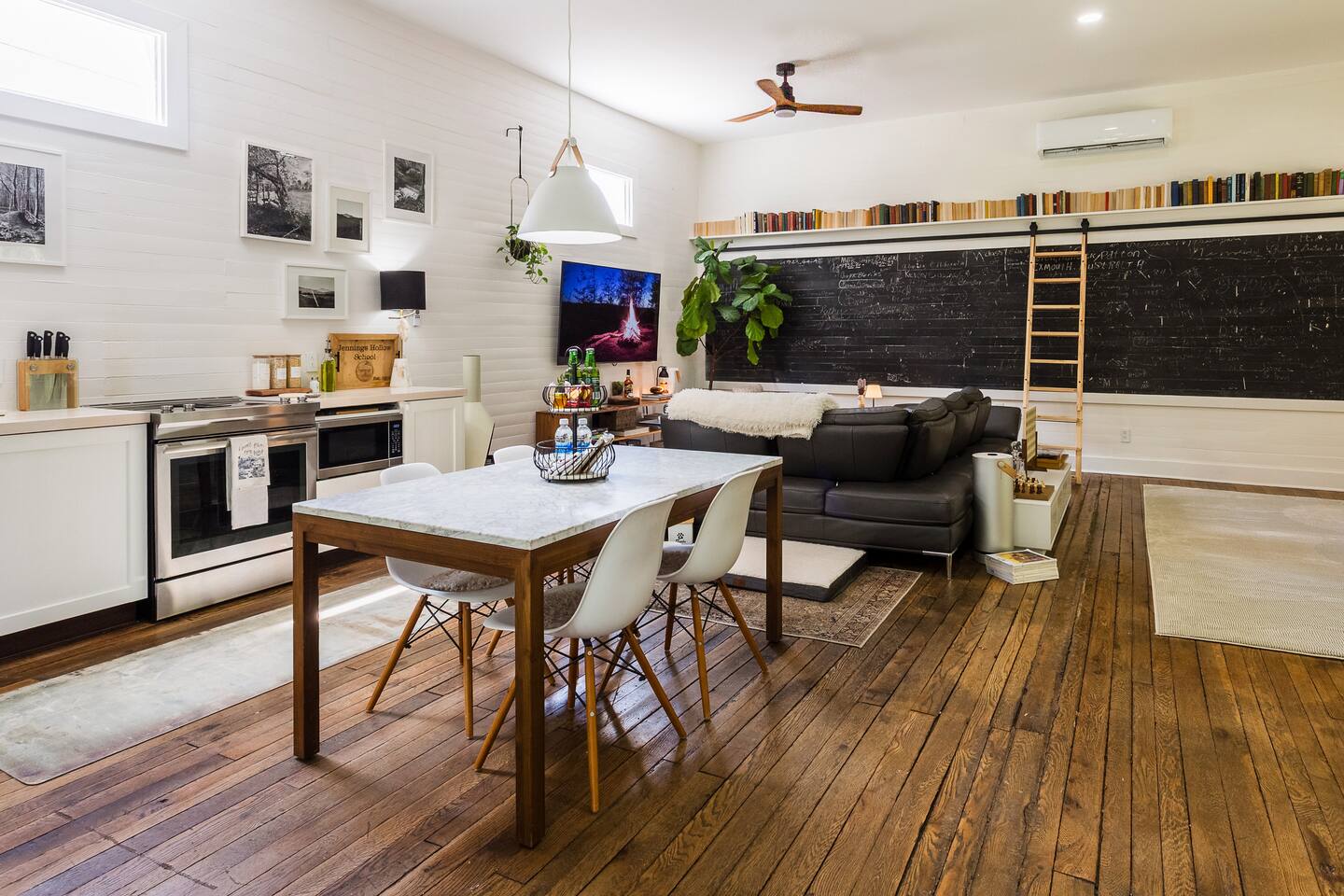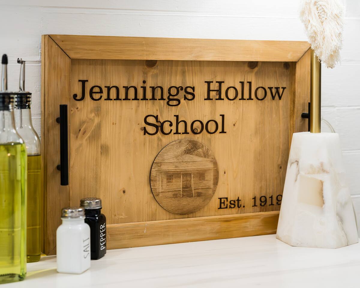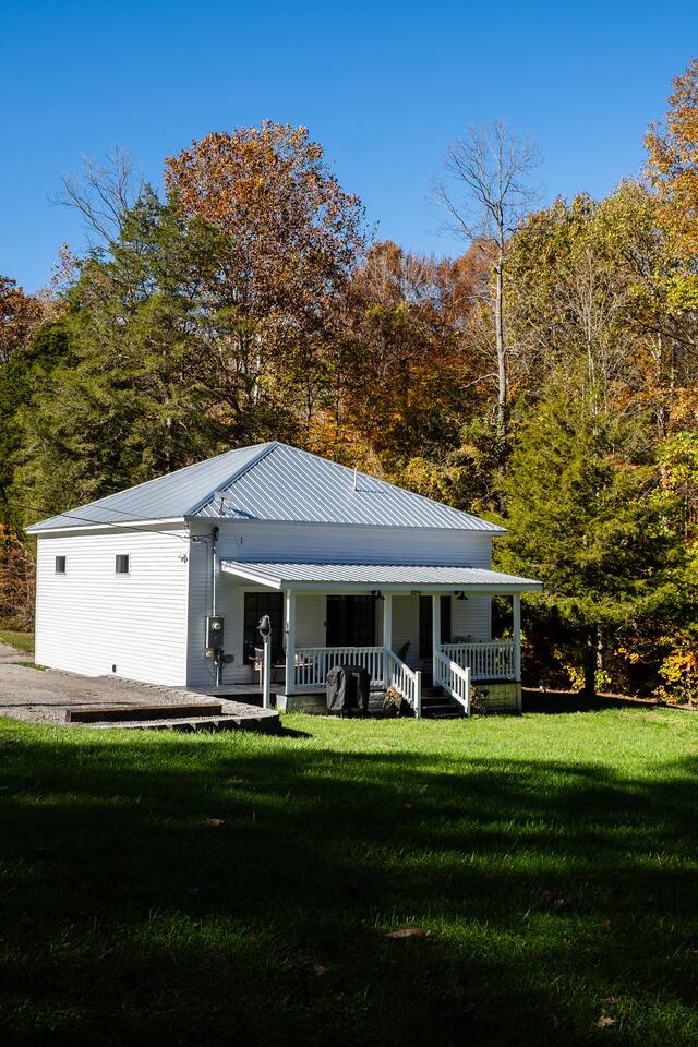 Modern Cabin Schoolhouse Escape – Disconnect, Relax, Reconnect with Nature Welcome to our lovingly transformed schoolhouse—now a modern cabin escape nestled in the heart of nature. Whether you're seeking a romantic retreat, a solo reset, or a creative hideaway, this is your space to unplug and recharge. 🌿 Surroundings That Sing With Life Step outside into a world alive with nature. Birds chirping, butterfly's fluttering , deer wandering through the woods, cows mooing in the distance—it's a peaceful harmony you won’t find in the city. 🛋️ Modern Comforts Inside Inside, you’ll find all the modern amenities thoughtfully provided for your stay: A fully equipped kitchen with a high-end downdraft stove, microwave, dishwasher, essential utensils, and basic staples A compact fridge, perfectly sized to store your whole-food cooking needs A luxurious bathroom with everything you need to relax and refresh A spacious king-size bed for a restful night’s sleep A large-screen TV for streaming your favorite shows or catching the game A collection of books and record player to set the mood 📍 Off the Beaten Path There’s no food delivery this far out, but that’s part of the charm. Town is just a scenic 20-minute drive away, where you'll find a few local dining options and supplies if needed. 🪵 Unplug or Stay Connected—Your Choice Want to disconnect? You can. Need to stay plugged in? We’ve got you covered. Whether it’s writing, reading, or just soaking in the quiet—this space invites you to slow down and just be. 🌅 The Little Extras That Make It Special A cozy front porch, perfect for morning coffee or unwinding on cool evenings Wander and explore the Hollow Road – Disconnect, Relax, Reconnect with Nature Visit Dale Hollow and Lake Cumberland Come stay a while. Breathe deeply. Let the world wait.